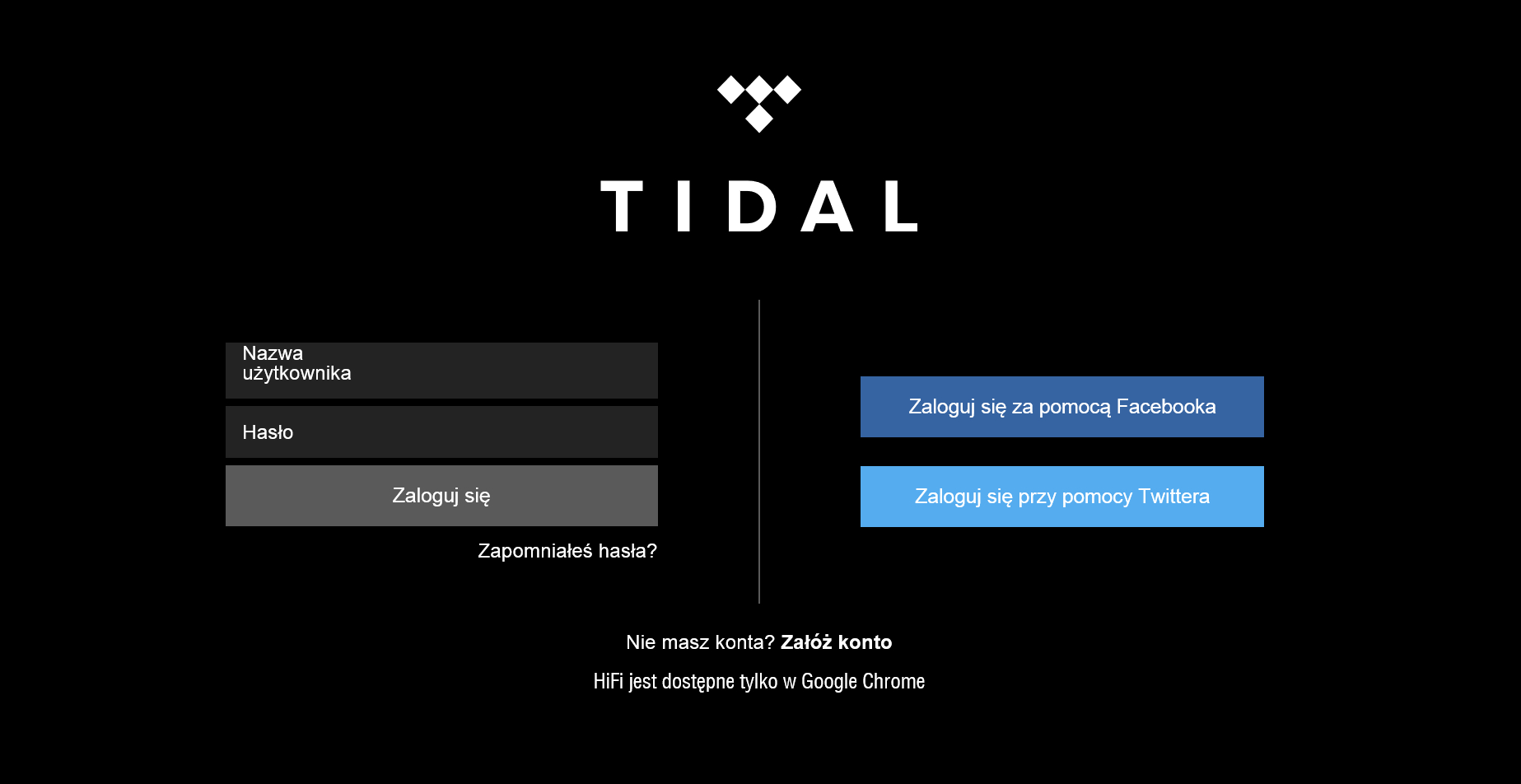 - Po stworzeniu konta zaloguj się w serwisie TIDAL używając danych podanych przy rejestracji.